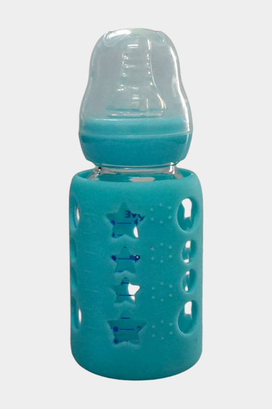 Feeding Glass Bottle with Silicon Cover (Blue)