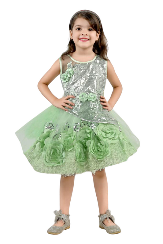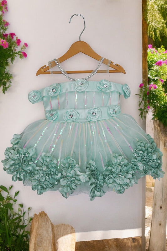 Party Dress with Flowered Hemline (Sea Green)
