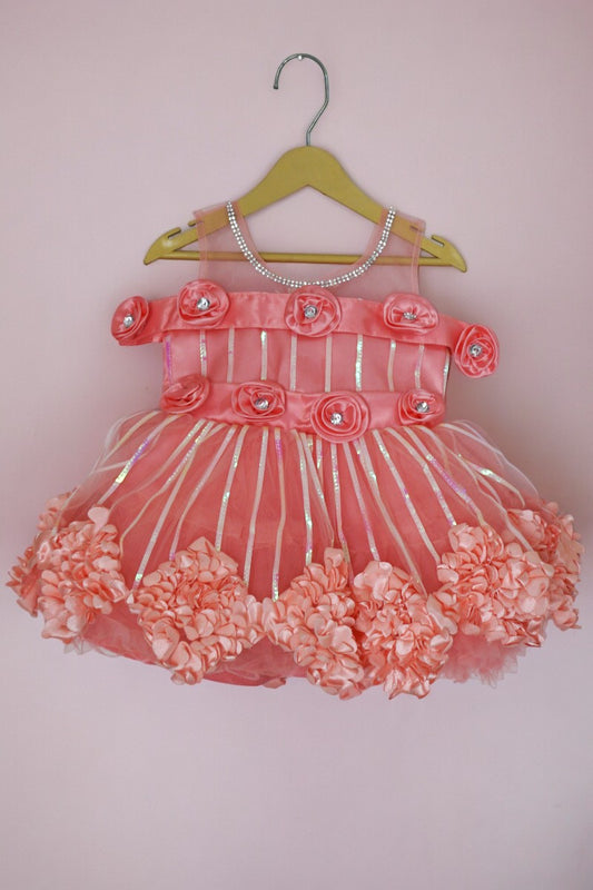 Party Dress with Flowered Hemline (Peach)