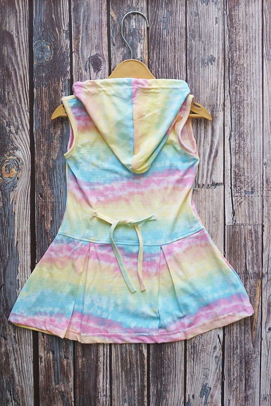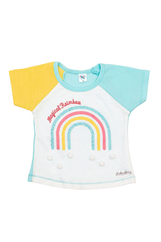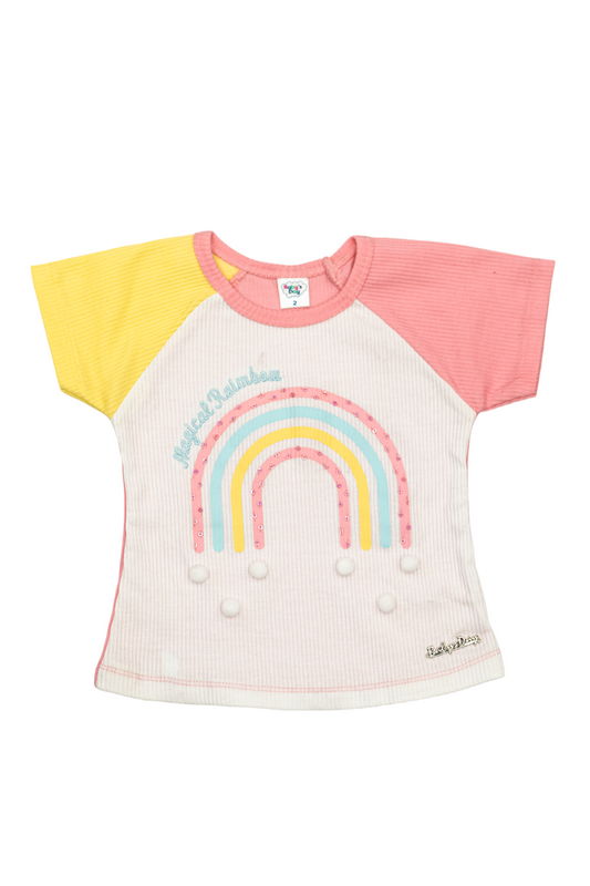 Cotton Top & Denim Shorts (Rainbow Print - Pink)