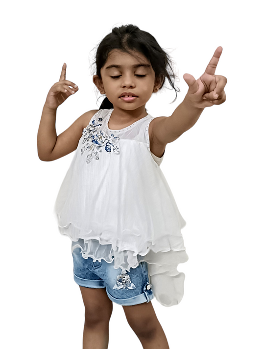Cup Cake Cotton Top & Checkered Denim Skirt